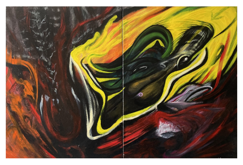 Psychosis, acrylique et vernis sur toile, 4x80x60 cm
